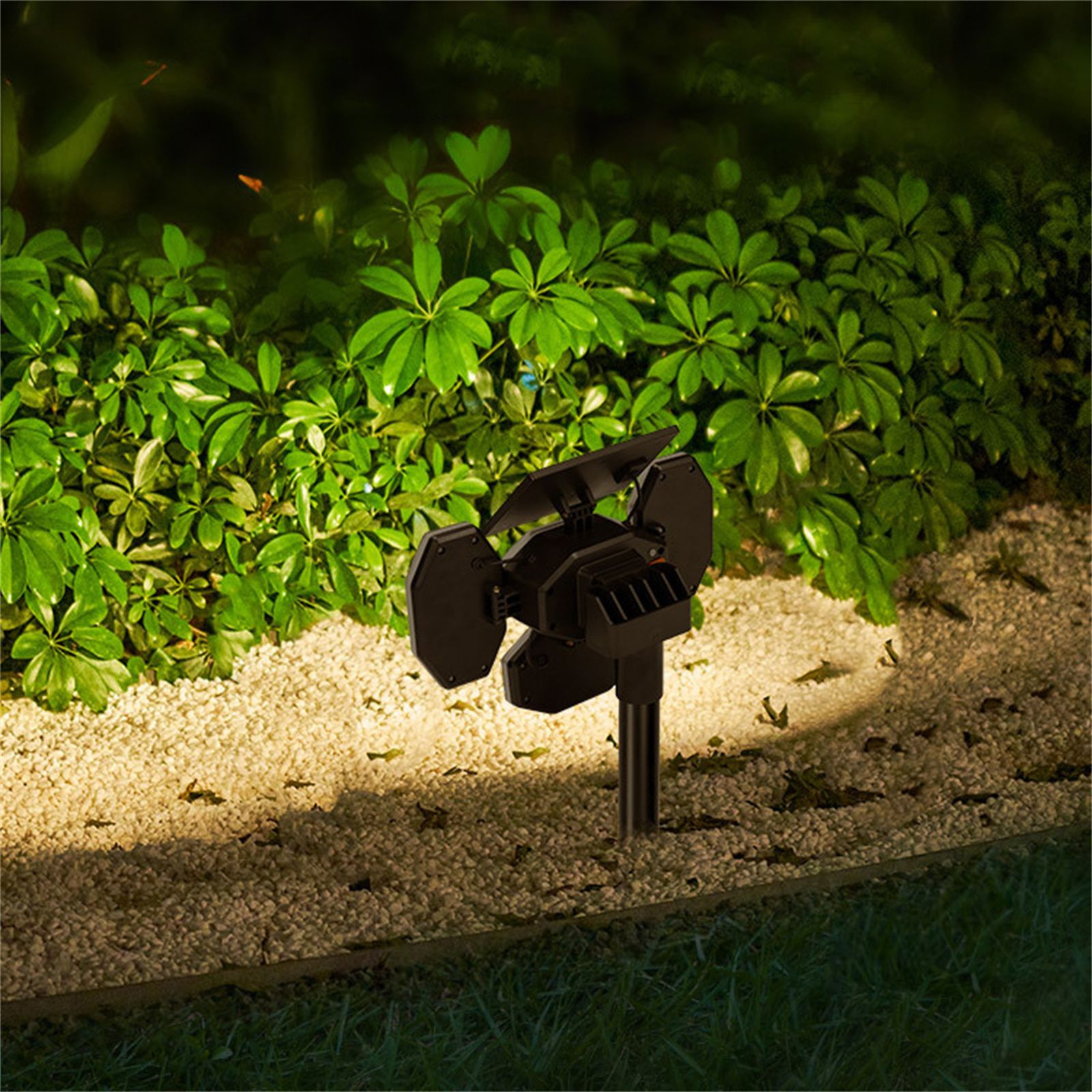-The latest dual-purpose technology: one lamp is dual-purpose, our latest wall lamp can be used as lawn lamp lighting, or as wall lamp lighting, 4-sided lighting, wider angle, the 3 panels of the lamp can be rotated horizontally to meet your needs from different angles meet the lighting needs, built-in 32LED+183COB super bright lamp beads, our solar spotlights are brighter than other spotlights, the lighting range is > 270°