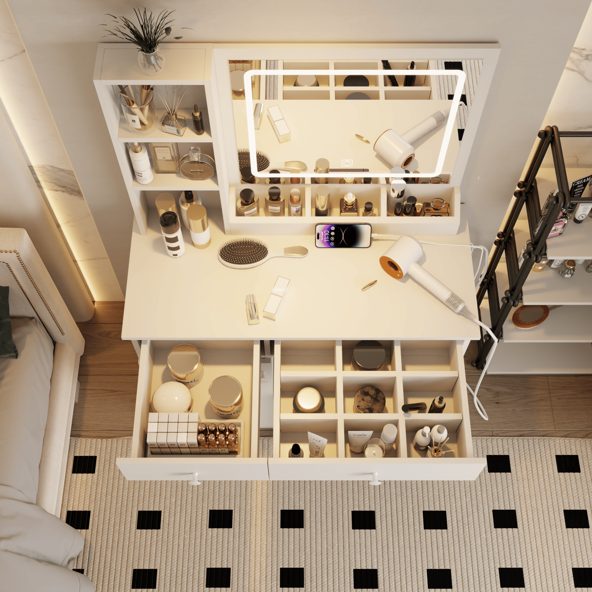 Fashion Vanity Desk with Mirror and Lights for Makeup, Vanity Mirror with Lights and Table Set with 3 Color Lighting Brightness Adjustable Fashion Vanity Desk with Mirror and Lights for Makeup, Vanity Mirror with Lights and Table Set with 3 Color Lighting Brightness Adjustable Fashion Vanity Desk with Mirror and Lights for Makeup, Vanity Mirror with Lights and Table Set with 3 Color Lighting Brightness Adjustable