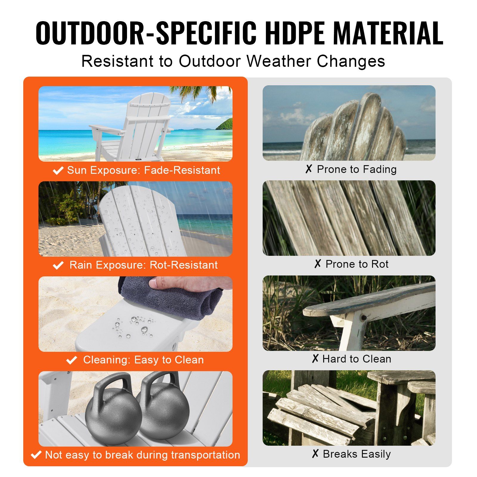 3.Heat and Water Resistant: The folding adirondack chairs are made from high-quality HDPE plastic, it resists heat, water, and various weather conditions without warping, cracking, or rotting. Perfect for patios, gardens, pools, beaches, and porches.