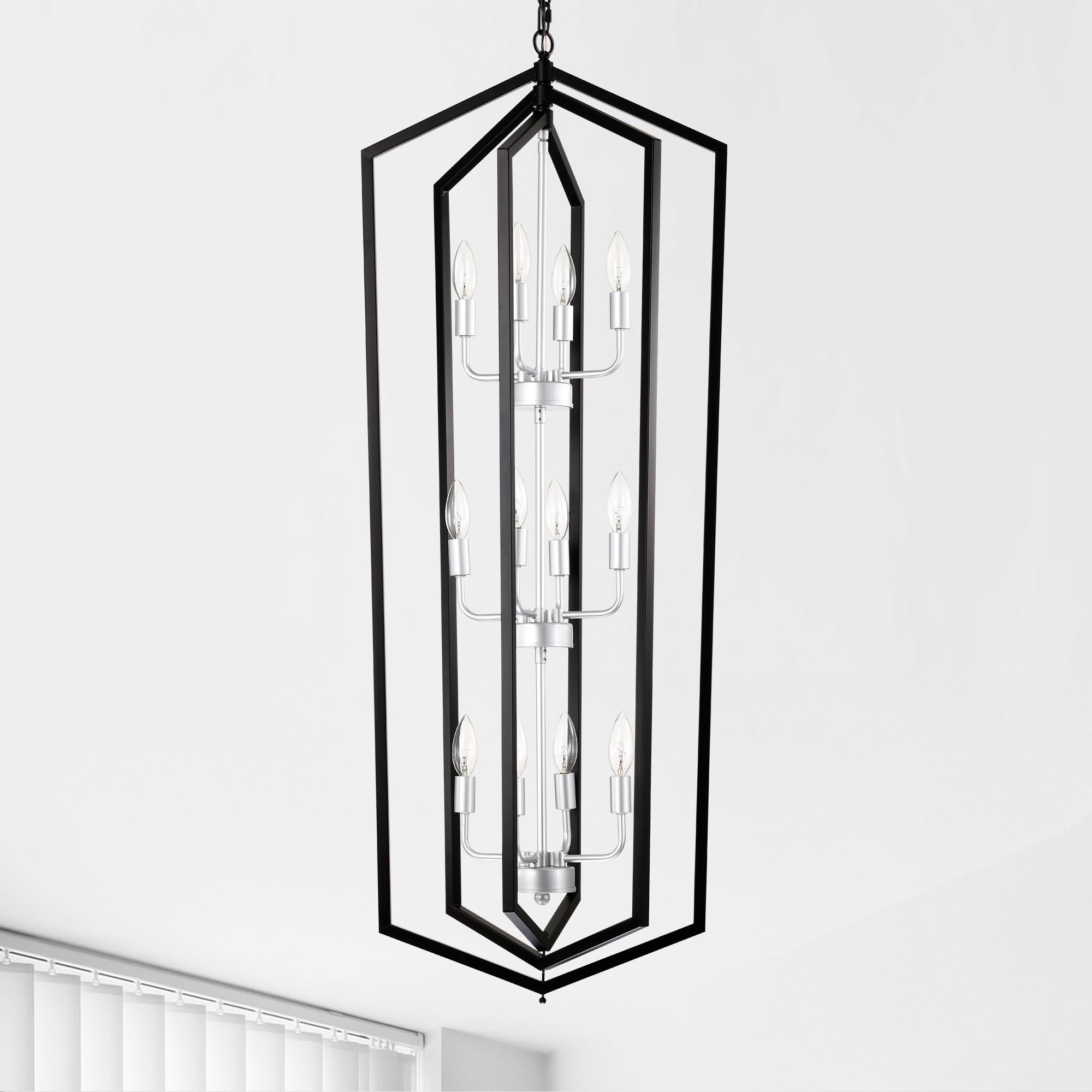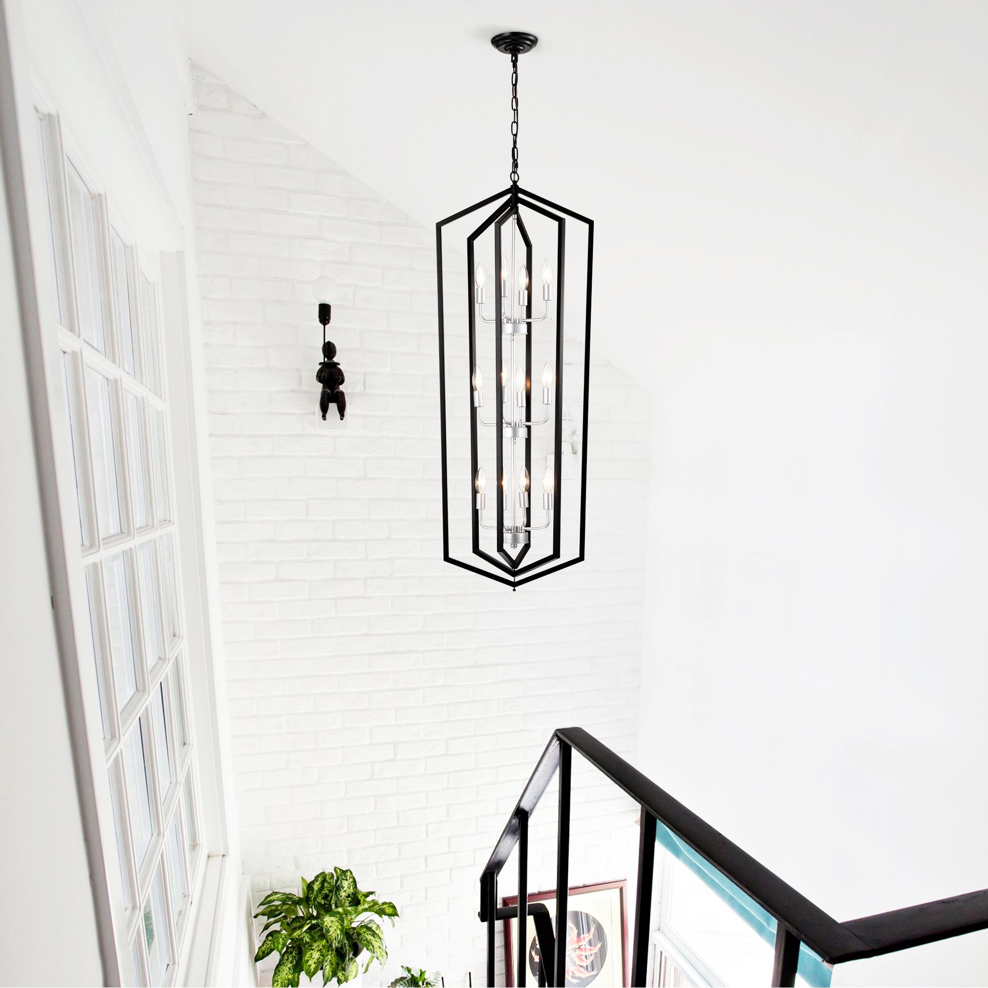 [Unique Chandelier] The pendant lights kitchen island features a lantern shape with matte black finish and Sliver finish, offers a rustic yet modern vibe. With its beautiful design, this ceiling hanging light will be a focal point in any area. Perfect for dining room, kitchen, living room, bedroom, office conference room or areas with high ceilings like foyers or entryways, stairways.