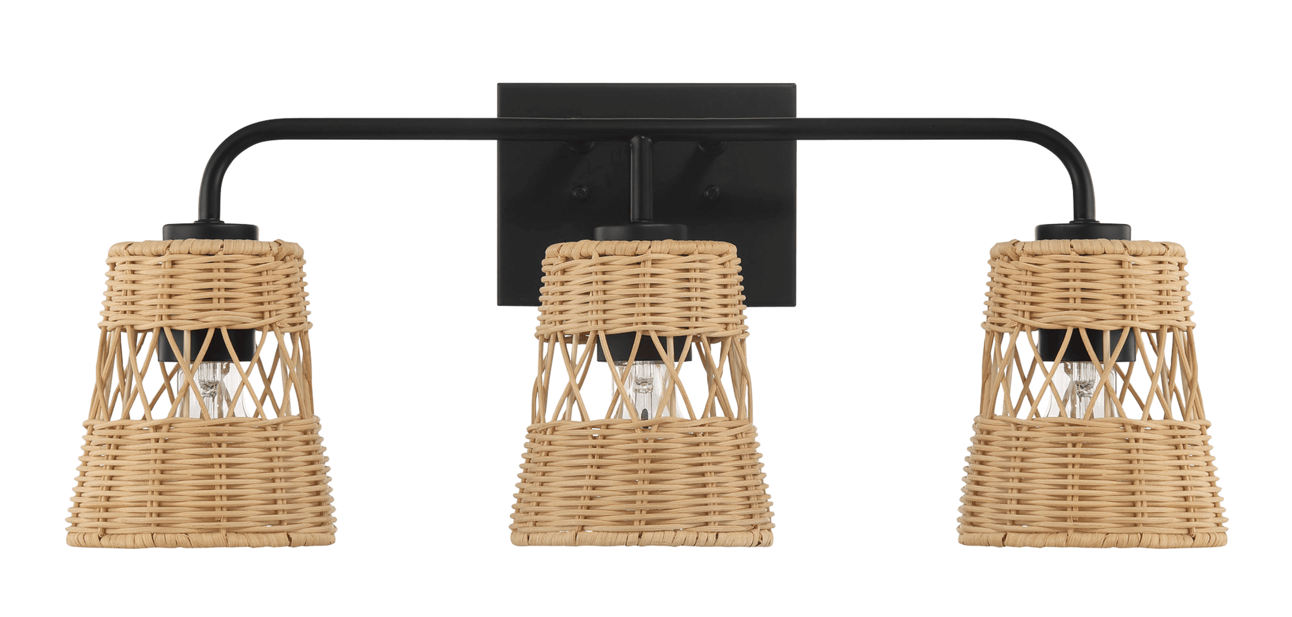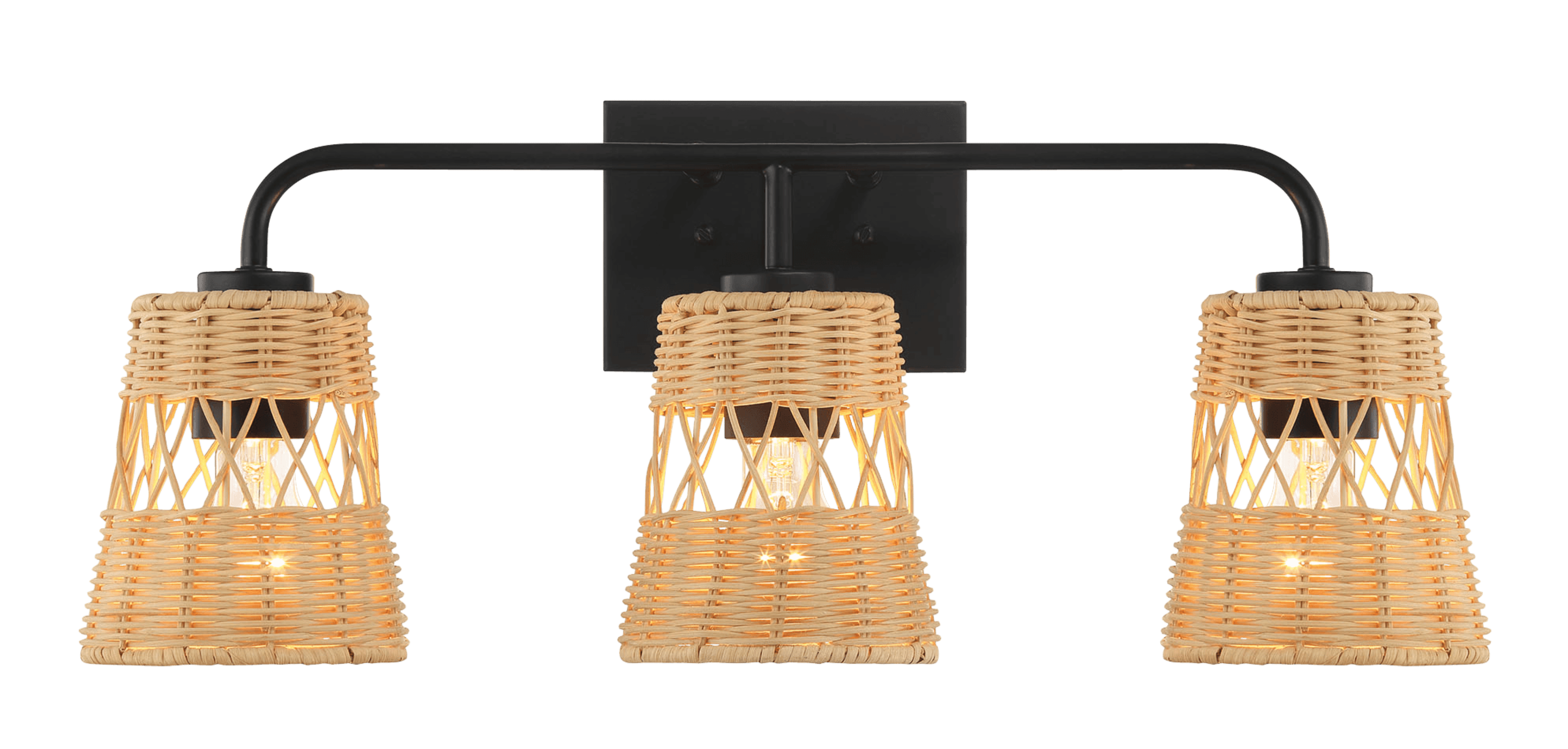 Transform your bathroom into a serene and stylish sanctuary with the Moonlit Three Lights Wall Sconce. Elevate your experience and indulge in the perfect blend of functionality and beauty. The black metal finish perfectly complements the farmhouse style, while the rattan shade adds a touch of nature.