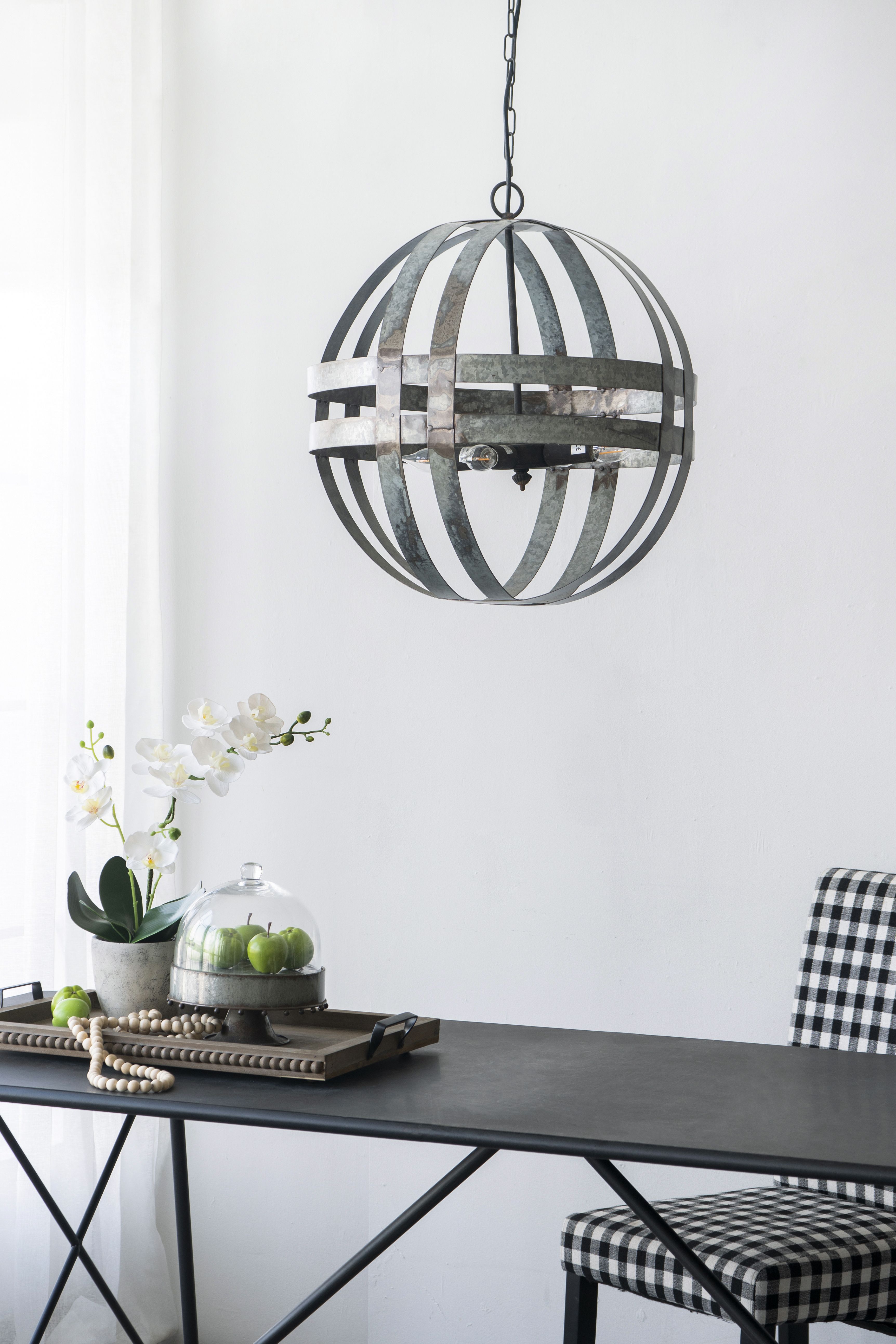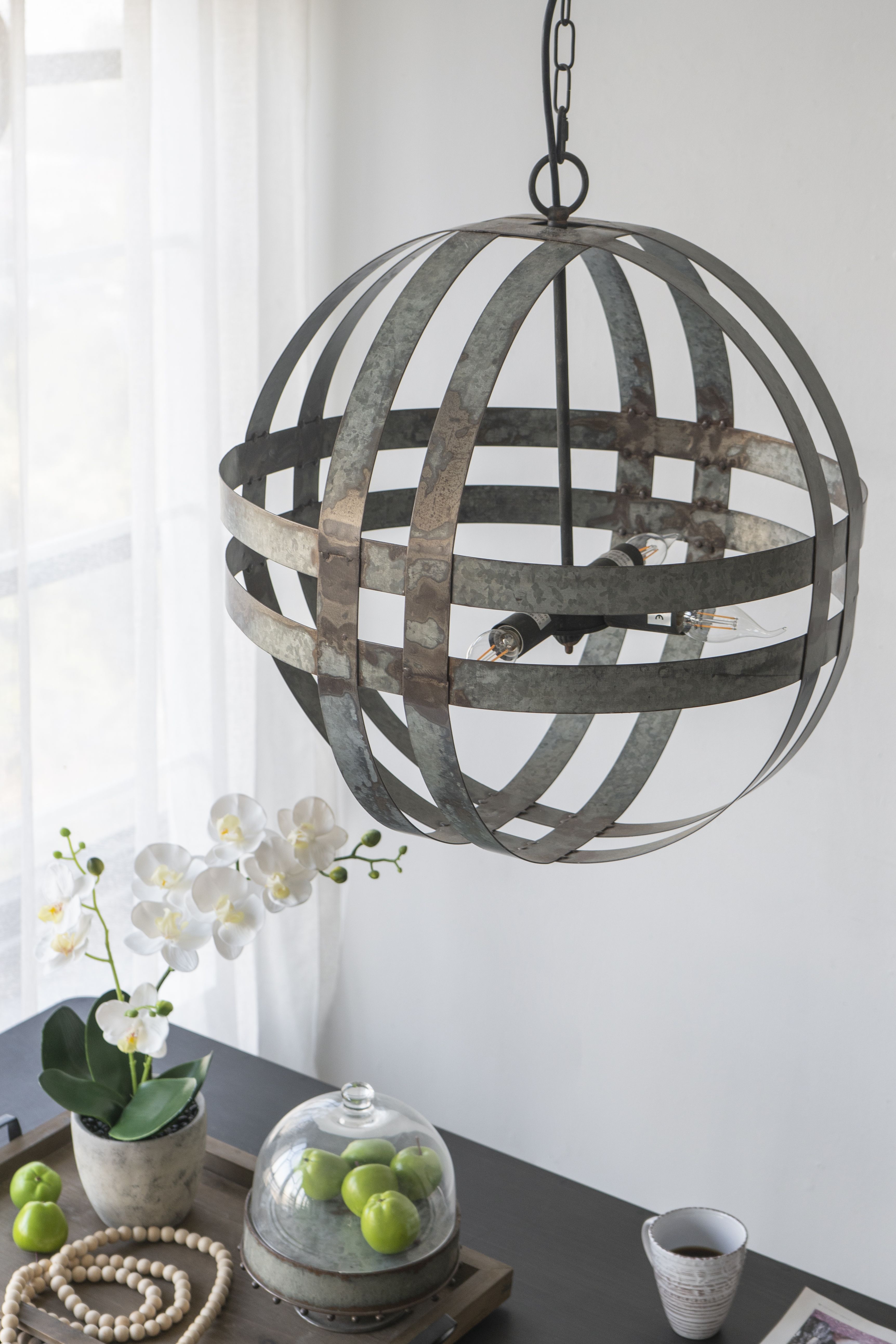 Add urban flair and shape to your space with this Kenzo Chandelier. Made from 100% galvanized steel, this chandelier is finished in antique silver and amps up your urban industrial decor.