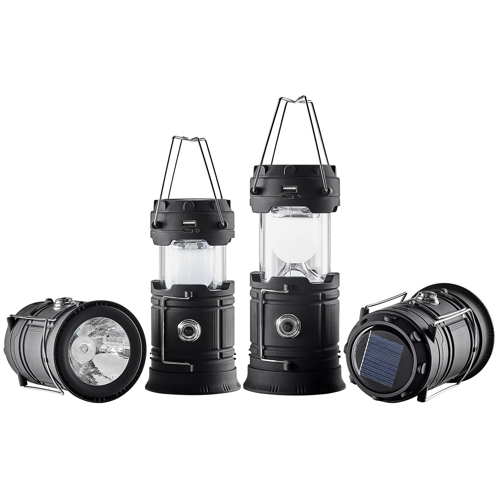 2.Versatile Charging Options: Our camping flashlight offers both solar and USB charging options, with a charging time of approximately 4-6 hours. It can be recharged at home or in your car, coming with 4 USB-C charging cables (0.5 m), offering excellent value whenever you are outdoor.