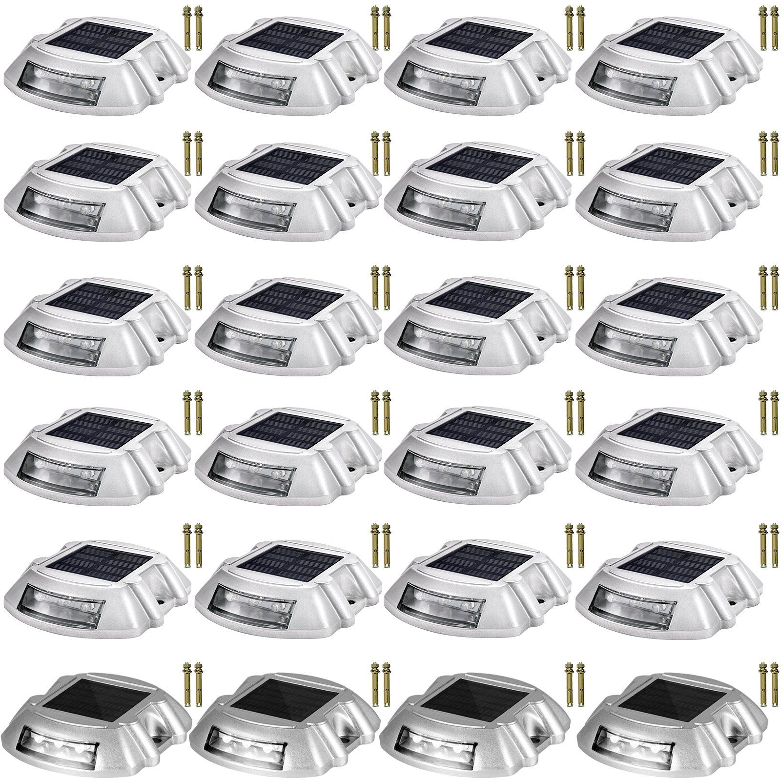 Here we will offer you 24pcs Solar Dock Light, which is designed for illumination and decoration. It gets charged automatically during day time and illuminates after dark. With die casting aluminum shell, this light is Ip68 waterproof, anti UV, and can withstand 44000lb load for car or trunk passing. With super bright LEDs, it can light up 875 yards area. Superb product with 72 hours working time after fully charged.