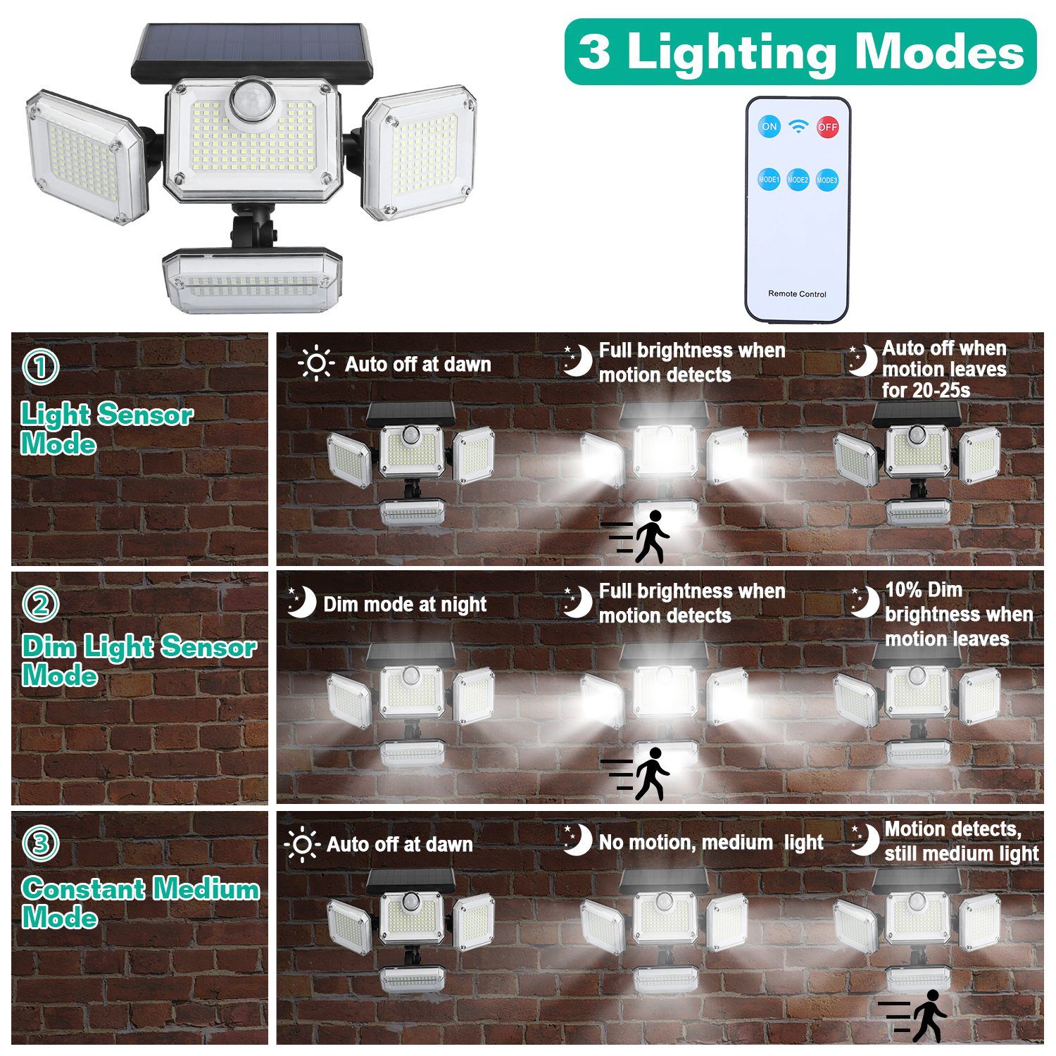 *3 Lighting Modes*:Comes with a wireless remote control,allowing you to select the most appropriate mode more conveniently. No longer need to take it off and set it like other solar light. All you need to do is to manually press the switch for the first time.