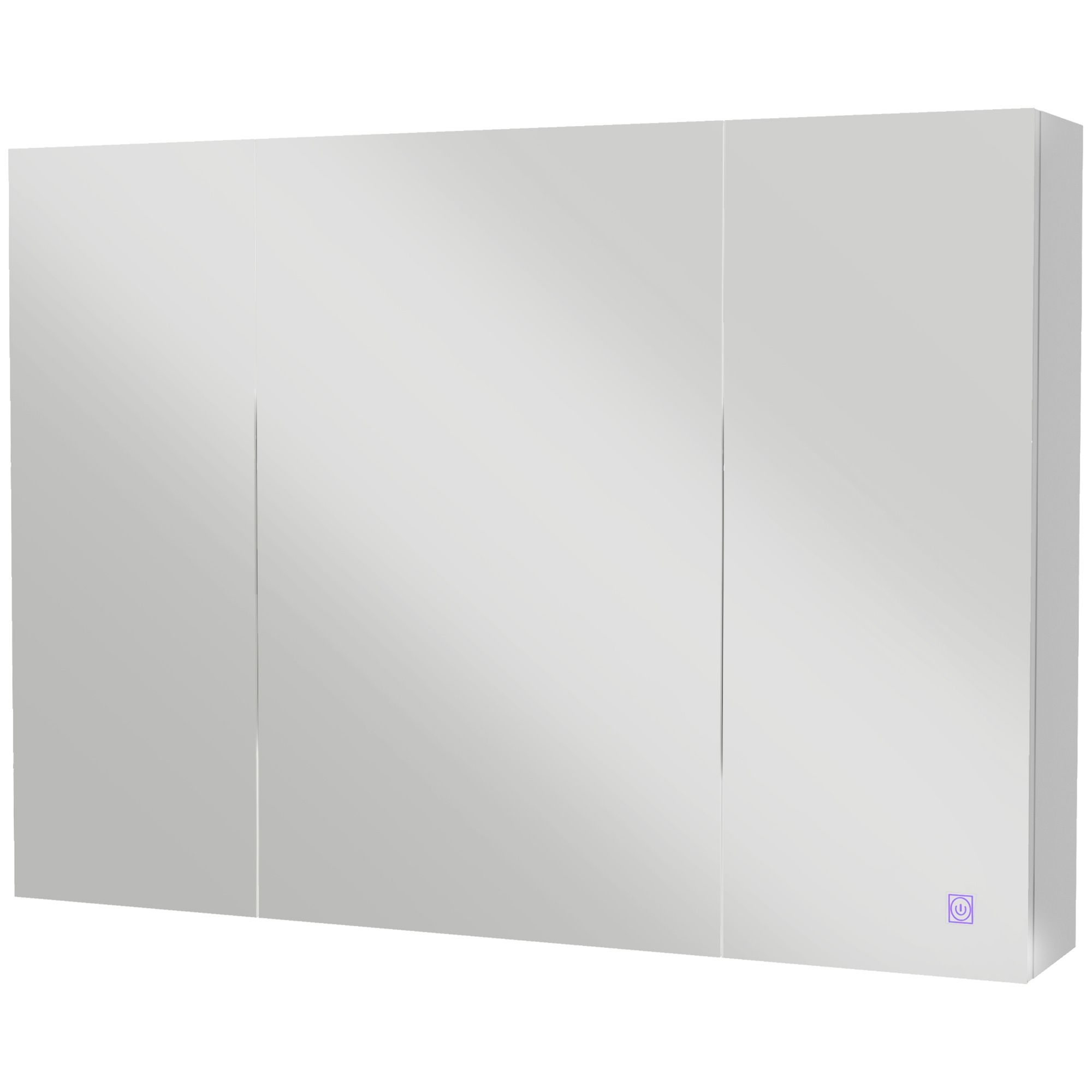 Home > kleankin Bathroom Mirror Cabinet with Light, Bathroom Storage Cupboard with USB Charge, Adjustable Shelf, 35.5"W x 25.5"H, White