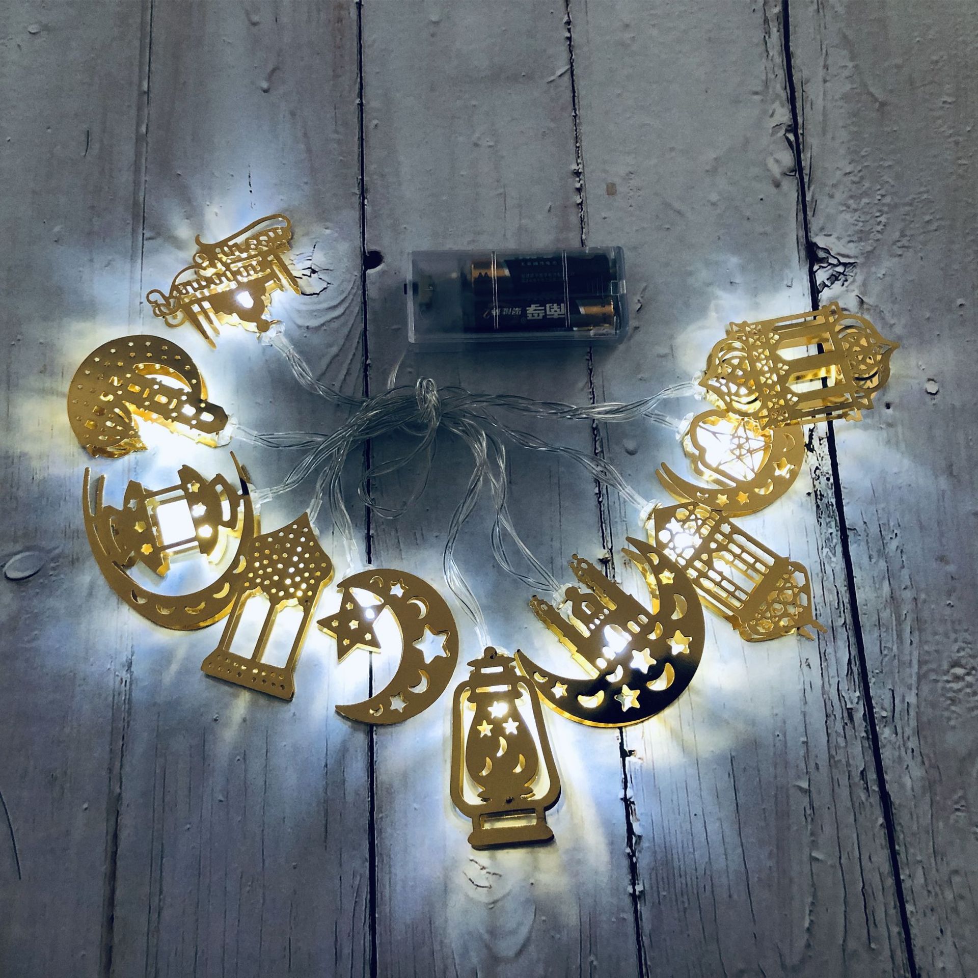 Home > 1pc; Eid Al Adha Decorations String Lights; 6.56 Feet 10 LEDs Eid Moon Star Kerosene Lantern Lamp; Battery Operated For Ramadan Outdoor Home Decoratio