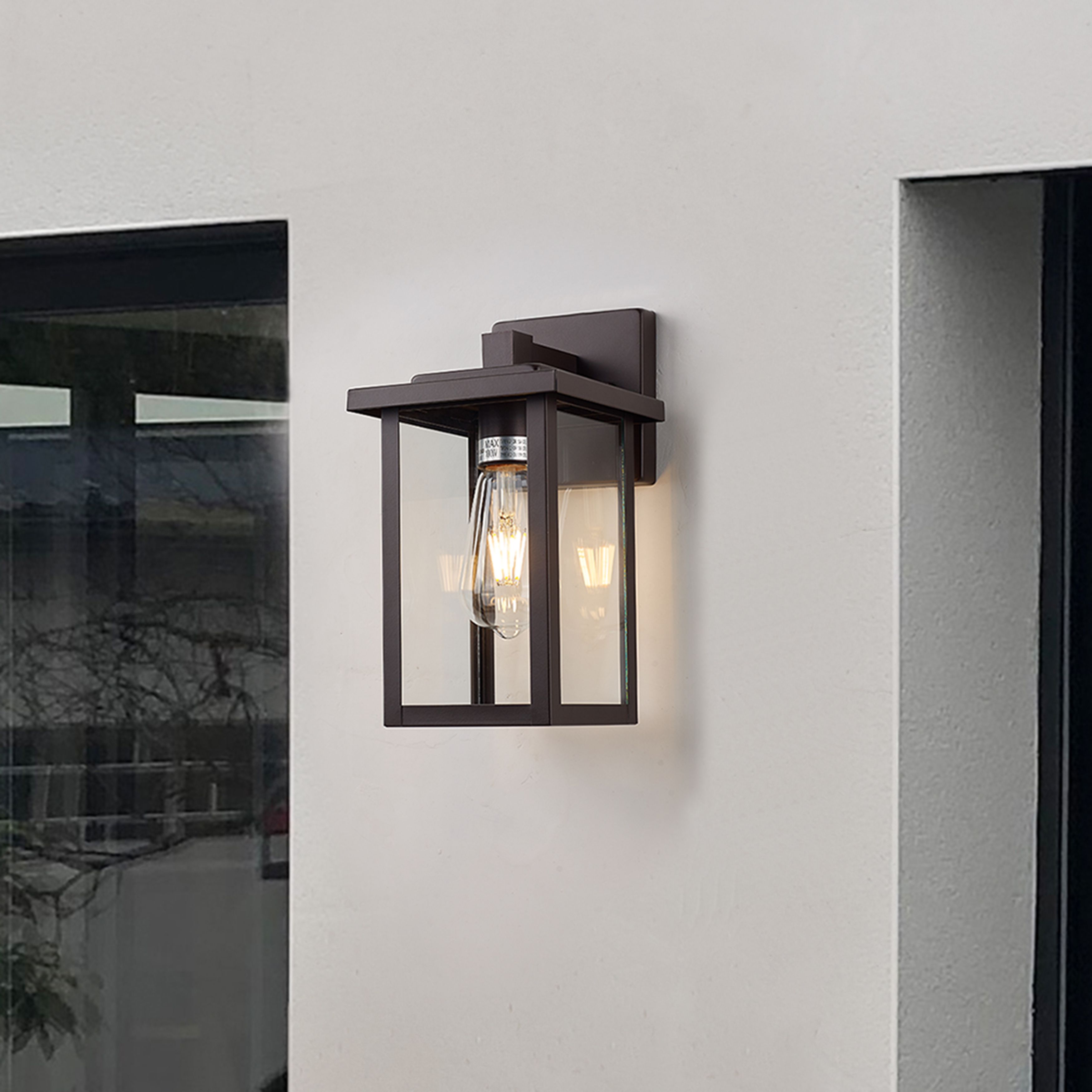 Outdoor wall light in ORB finish with clear glass, 6*6.75*11"