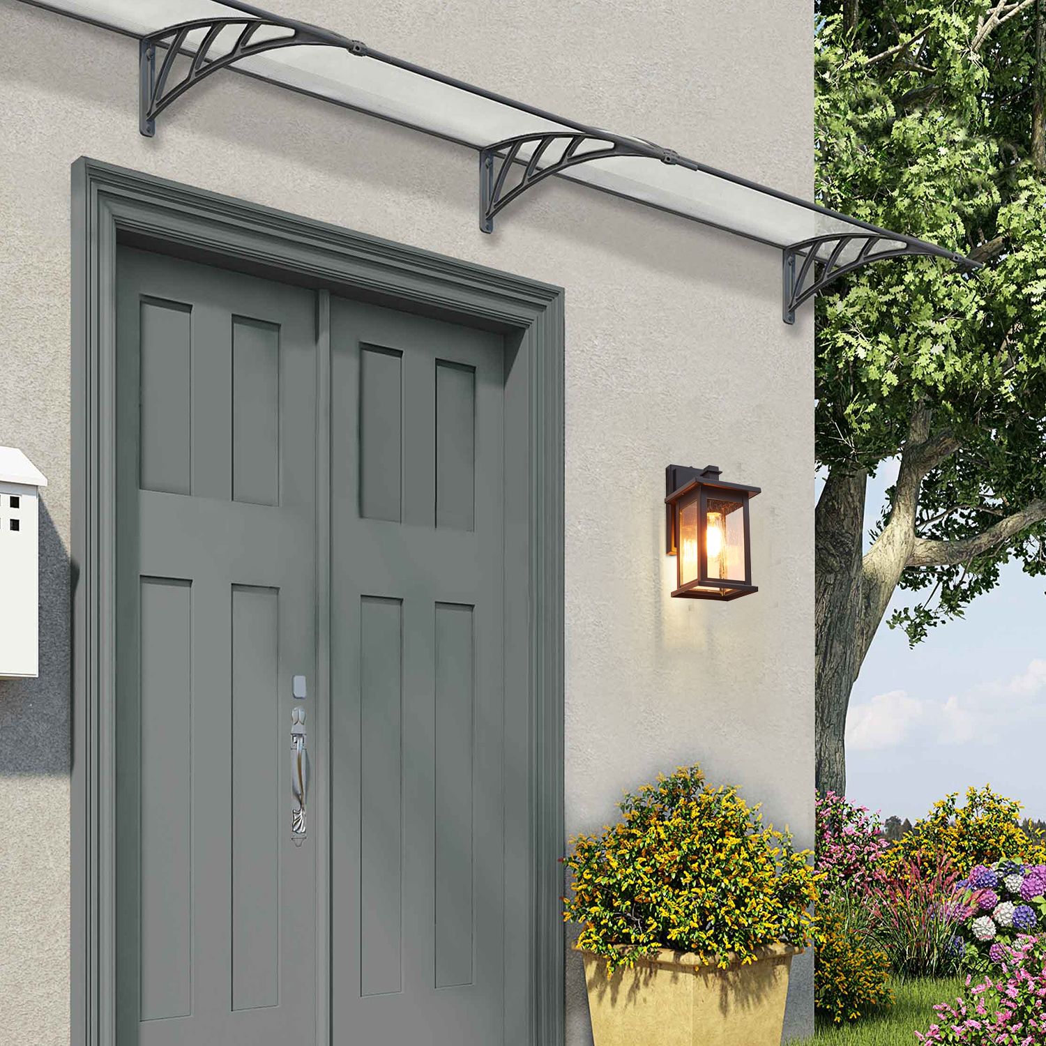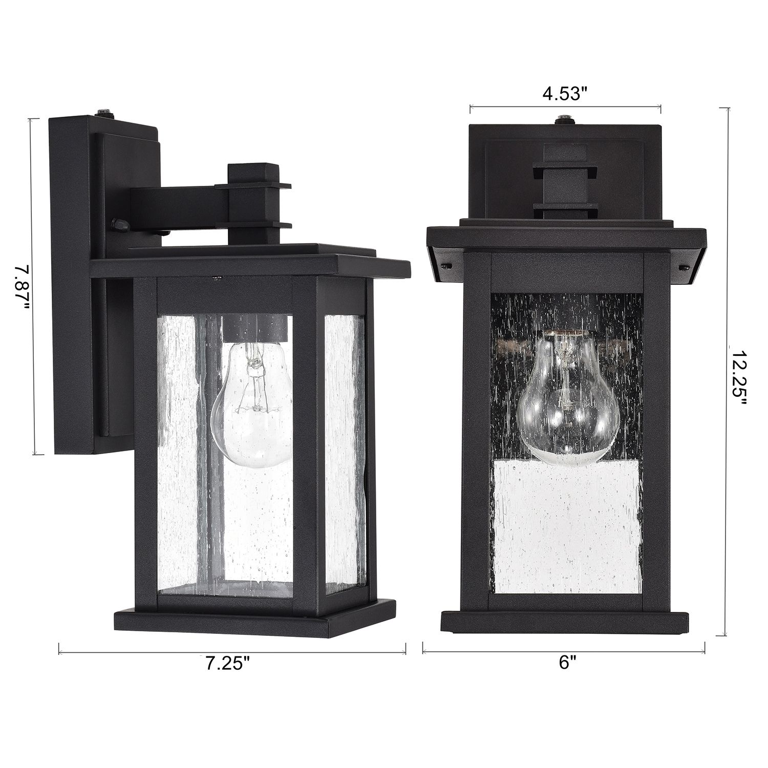 Dusk to dawn outdoor wall light in black finish with clear seedy glass, 6*7.25*12.25"