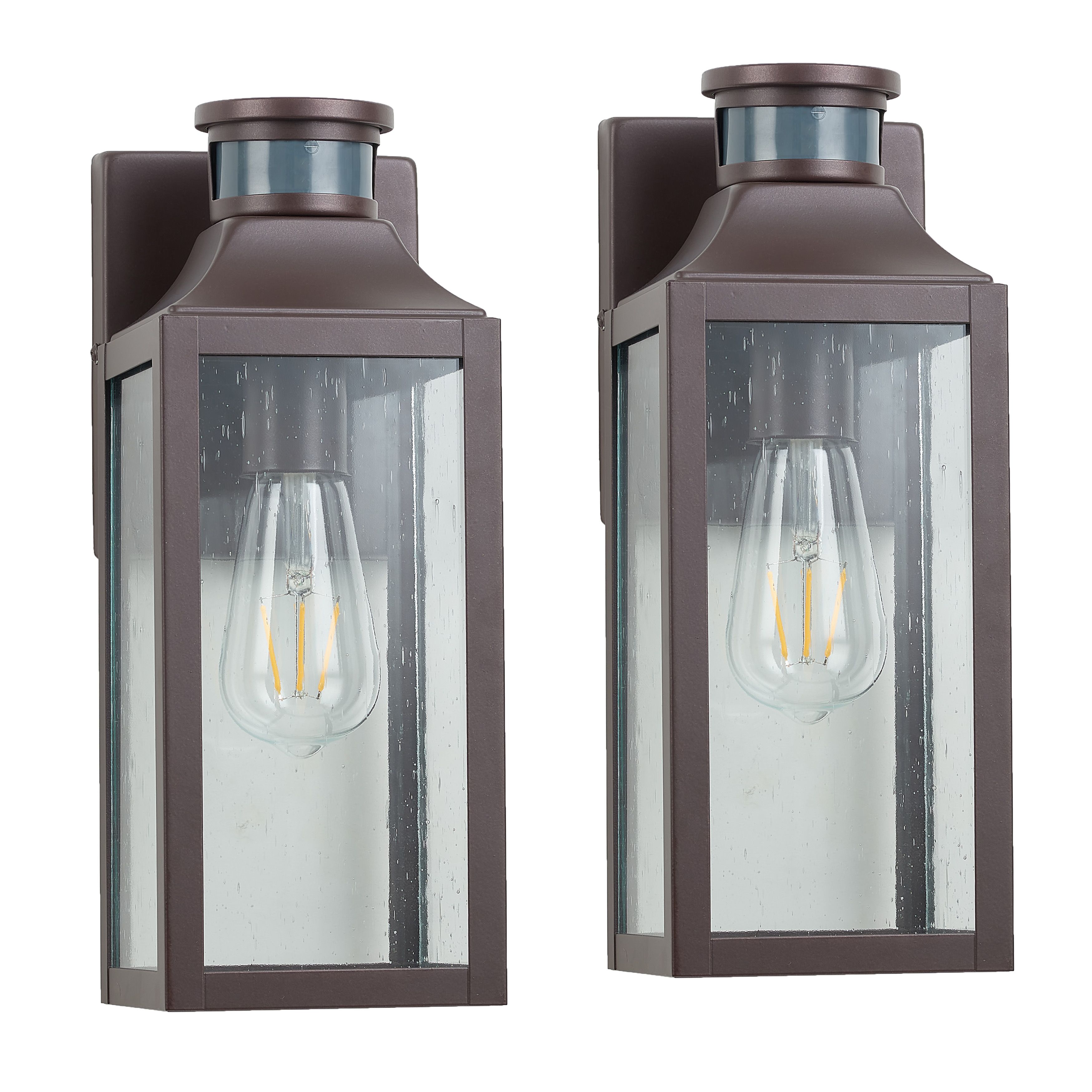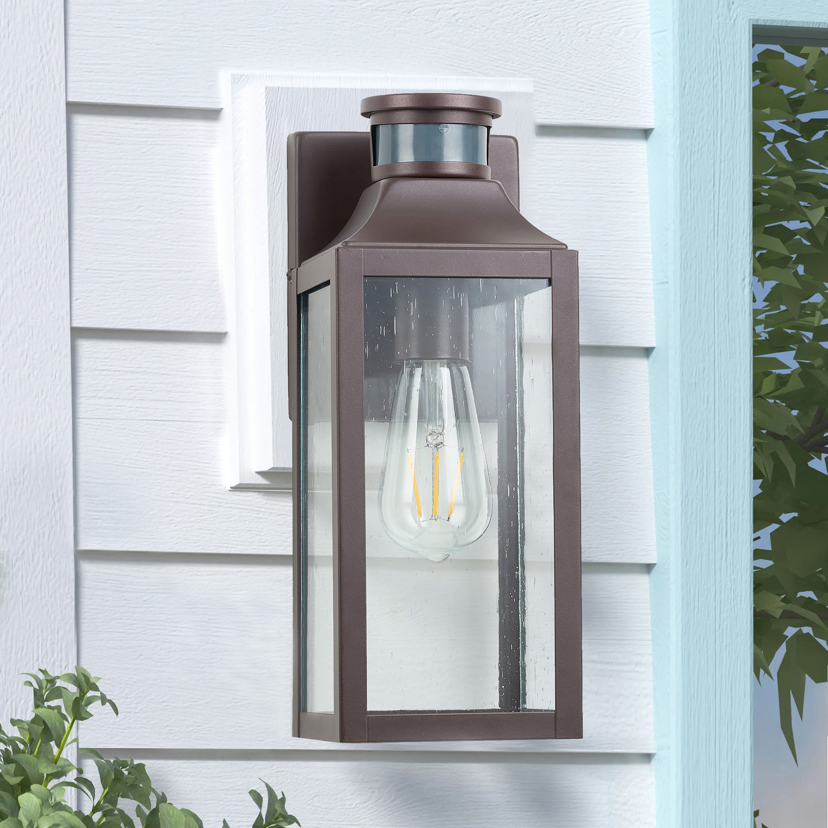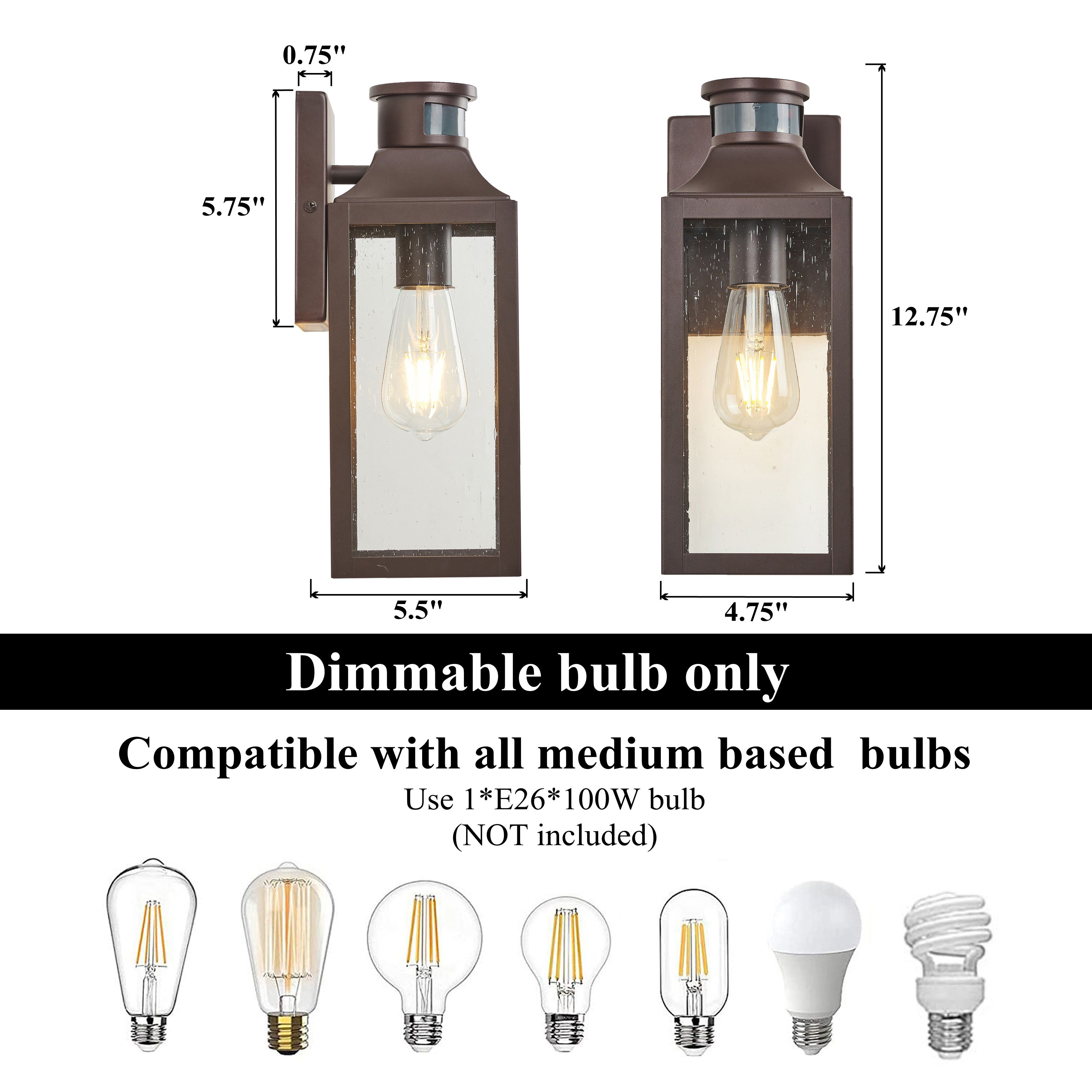 Motion sensor outdoor wall light in ORB finish with clear seedy glass, 4.75*5.5*12.75"