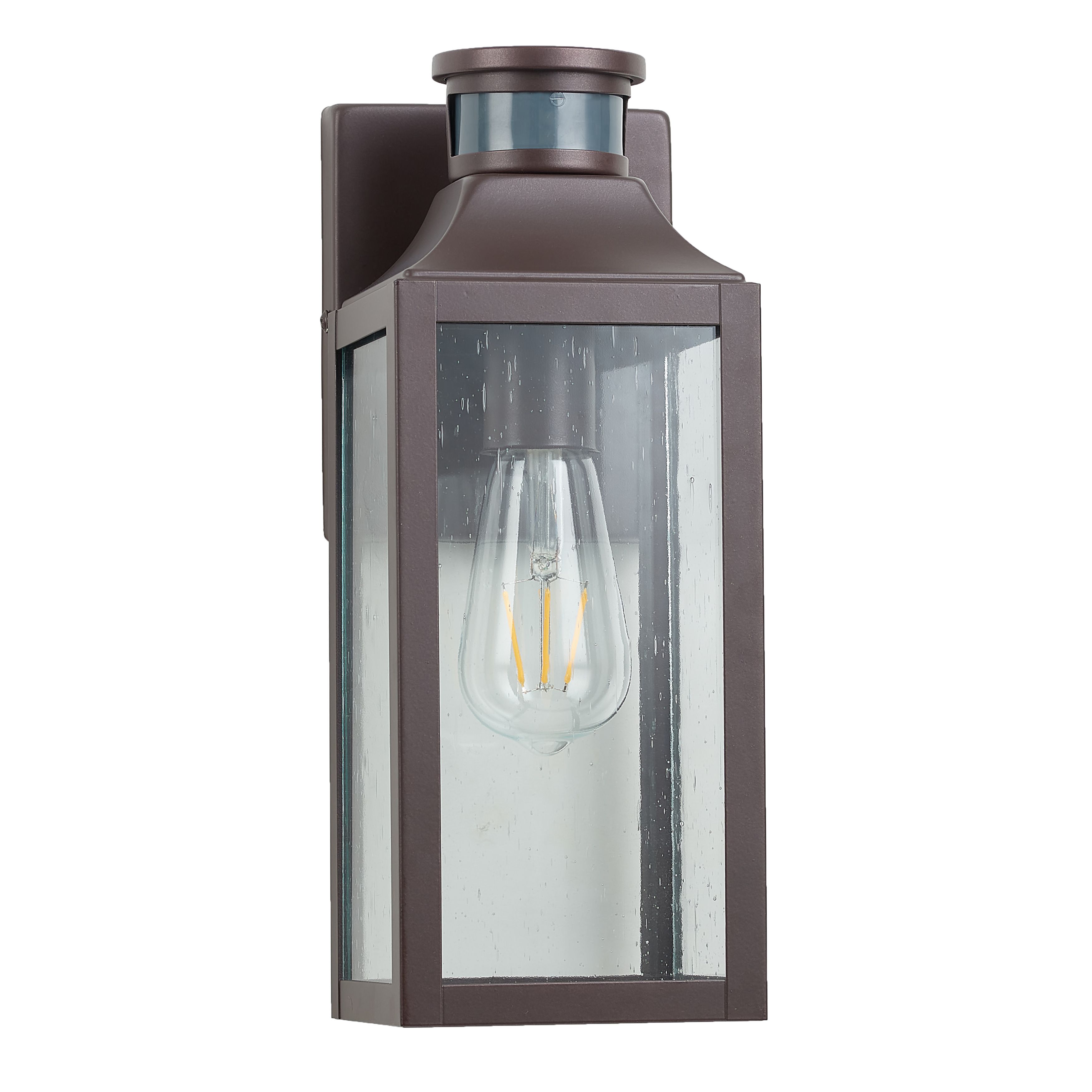 Motion sensor outdoor wall light in ORB finish with clear seedy glass, 4.75*5.5*12.75"